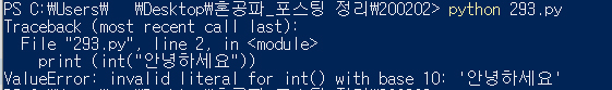 미션 - 구문 오류와 예외의 차이 설명하기(291쪽 1번 문제)